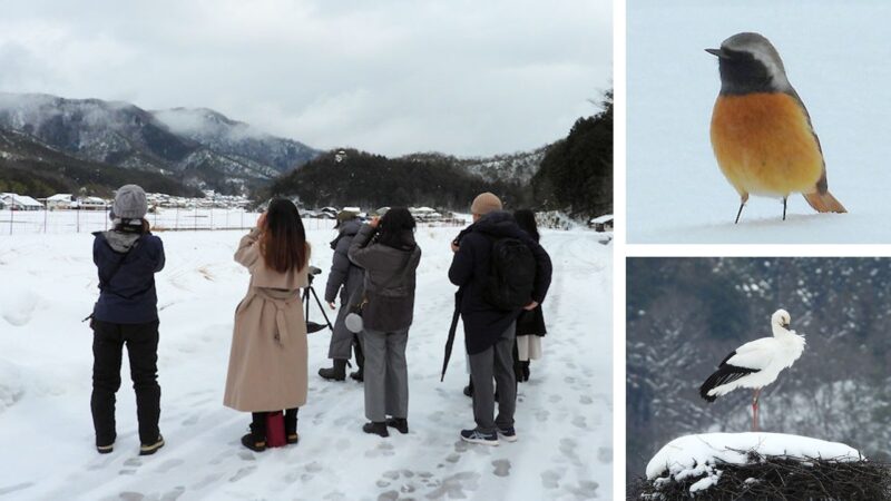 コウノトリの郷公園のある祥雲寺地区で暮らす野生コウノトリを観察しながら、園内で見られる野鳥や季節の生き物について案内します。