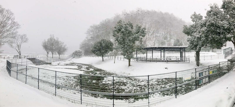 開園時は雪のない状況でしたが、10時過ぎに雪雲がやってきて時間経過と共に本降りになりました。風も強く屋外での観察は無理と判断し、シアタールームに集まってもらい、高橋の個人ブログから昨年冬の野鳥記録を辿りながら、大型スクリーンで冬鳥の説明をひとつひとつ行いました。ご家族で参加の少年は野鳥にめっぽう詳しく、写真を見せて名前を訊ねるとほとんど正しく種名を言い当てました。