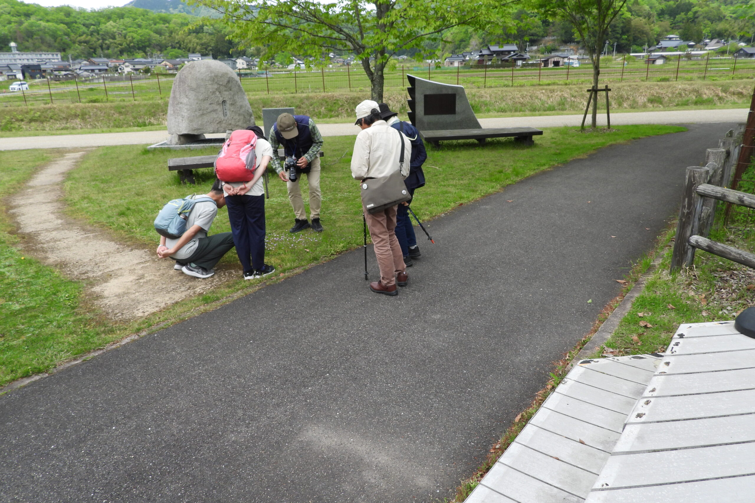 本日の田んぼの学校は、あぜ道を歩きながらタンポポや春の花などを観察しました。